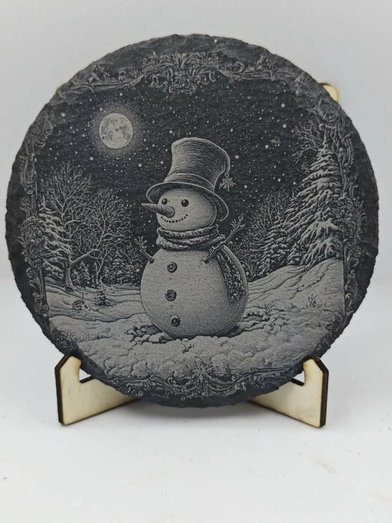Laser engraving on a round slate of Ø10cm.