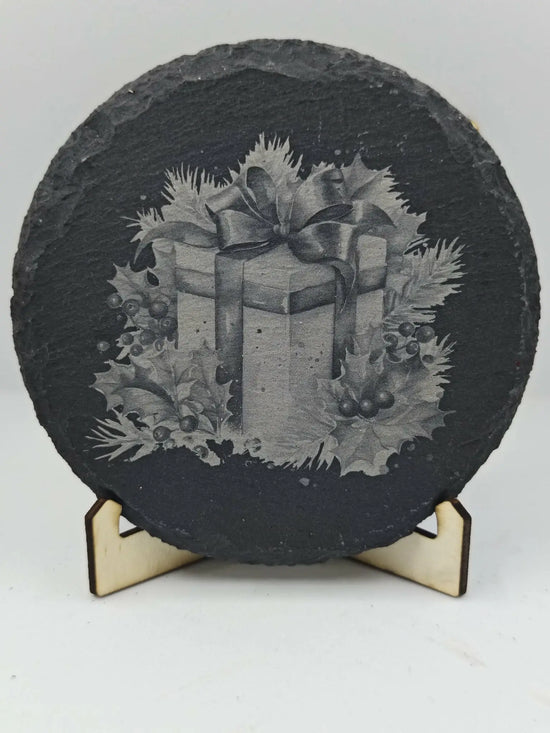 Grabado láser sobre pizarra redonda de Ø10cm.