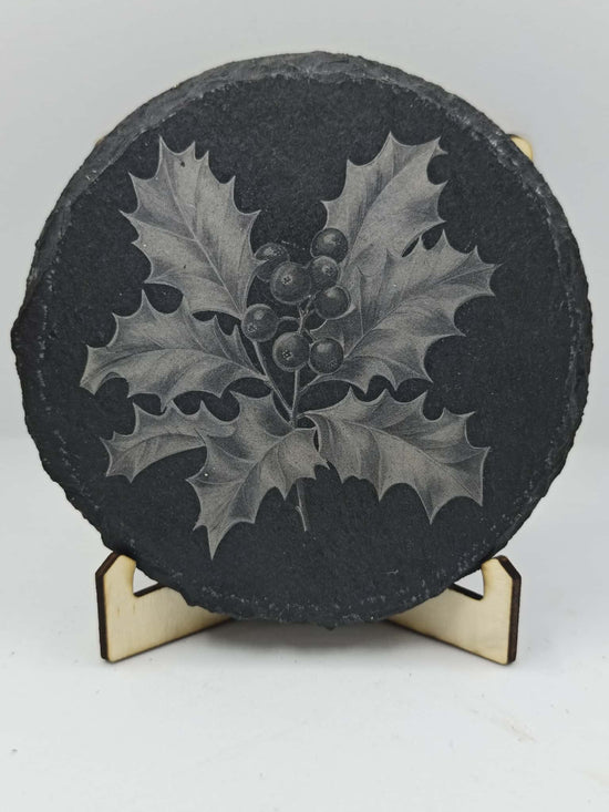 Grabado láser sobre pizarra redonda de Ø10cm.