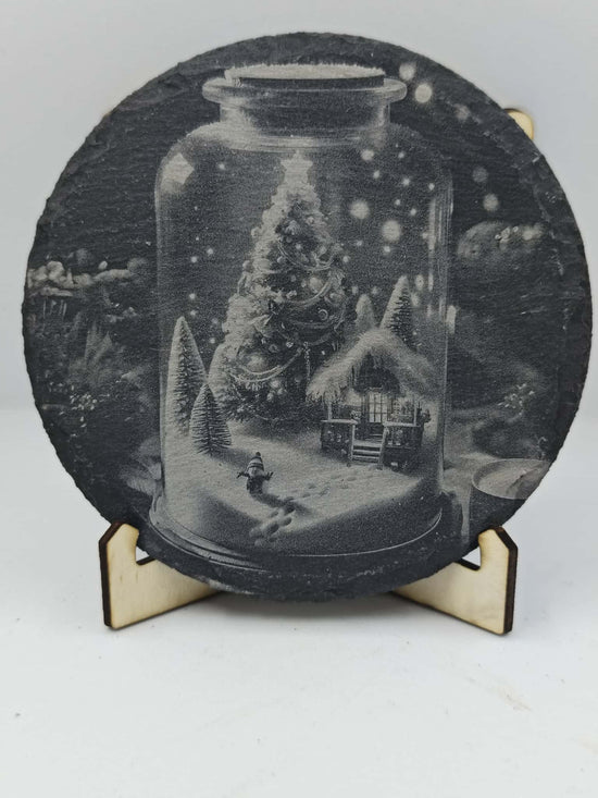 Gravure laser sur une ardoise ronde de Ø10cm.